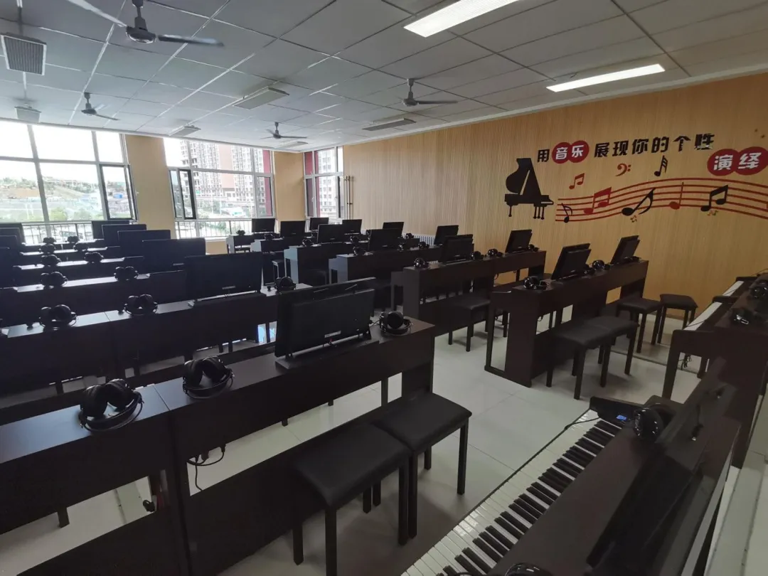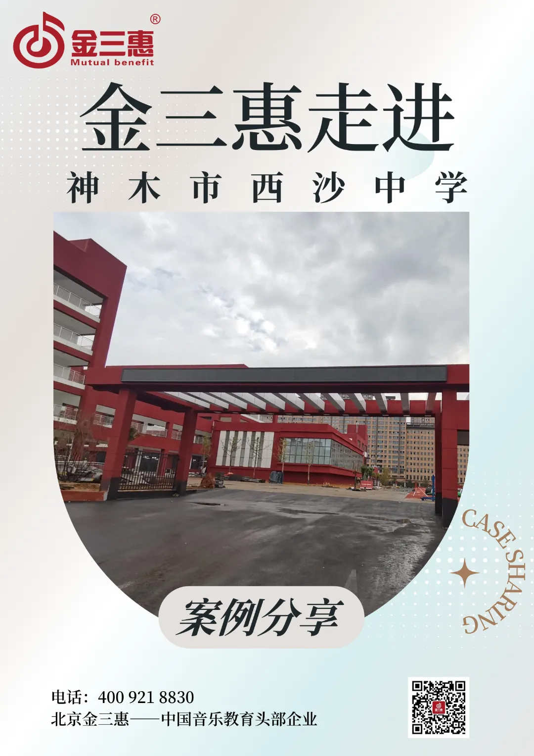 2024年8月,金三惠數(shù)字音樂教室走進神木市西沙中學,為學校提供了28+1的智慧音樂素養(yǎng)教室,配備了金三惠數(shù)字音樂教學系統(tǒng)、電鋼琴、數(shù)字音樂教學儀等教學教具等。