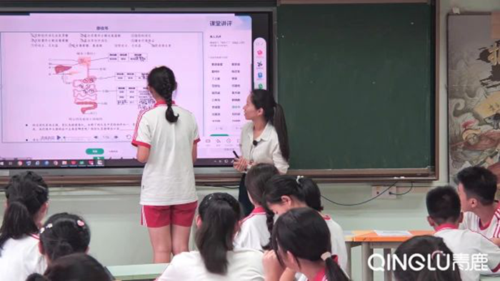 在《“雞肉三丁”探險隊之旅》一課上,郝老師通過布置學習任務, 讓每個學生在消化系統、血液循環系統、泌尿系統圖中用青鹿智能筆畫出營養物質的“探險路線”。