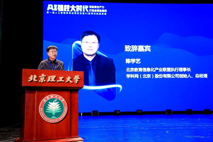 北京教育信息化產業聯盟執行理事長、學科網創始人、總經理陳學藝代表主辦單位為大會致辭。陳學藝介紹,聯盟以推動教育信息化發展為核心目標,本次主辦第一屆人工智能教育應用大會,是聯盟打造高水平人工智能教育合作平臺的創新之舉,將秉持精誠合作、開放共享的理念,廣泛凝聚產學研用各方力量一起對“人工智能+教育”進行有益探索,促進AI技術在教育領域的創新和應用,共同推動教育事業的進步與發展。