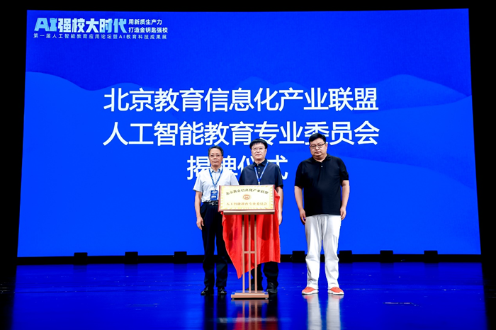 在論壇現場,北京教育信息化產業聯盟人工智能教育專業委員會成立揭牌。人工智能教育專委會由北京理工大學附屬實驗學校、北京宏志中學、北京第十五中學、北京師范大學良鄉附屬中學、北京教育科學研究院舊宮實驗小學、唐山市開平區開平小學等二十余所人工智能實驗學校及人工智能技術支持單位共同發起,未來將圍繞人工智能教育研究交流、搭建產學研用合作平臺、組織學術研討會及課例展示會議、為學校提供人工智能服務等方面開展工作,積極在基礎教育領域推進人工智能的應用普及,賦能教育數字化轉型。
