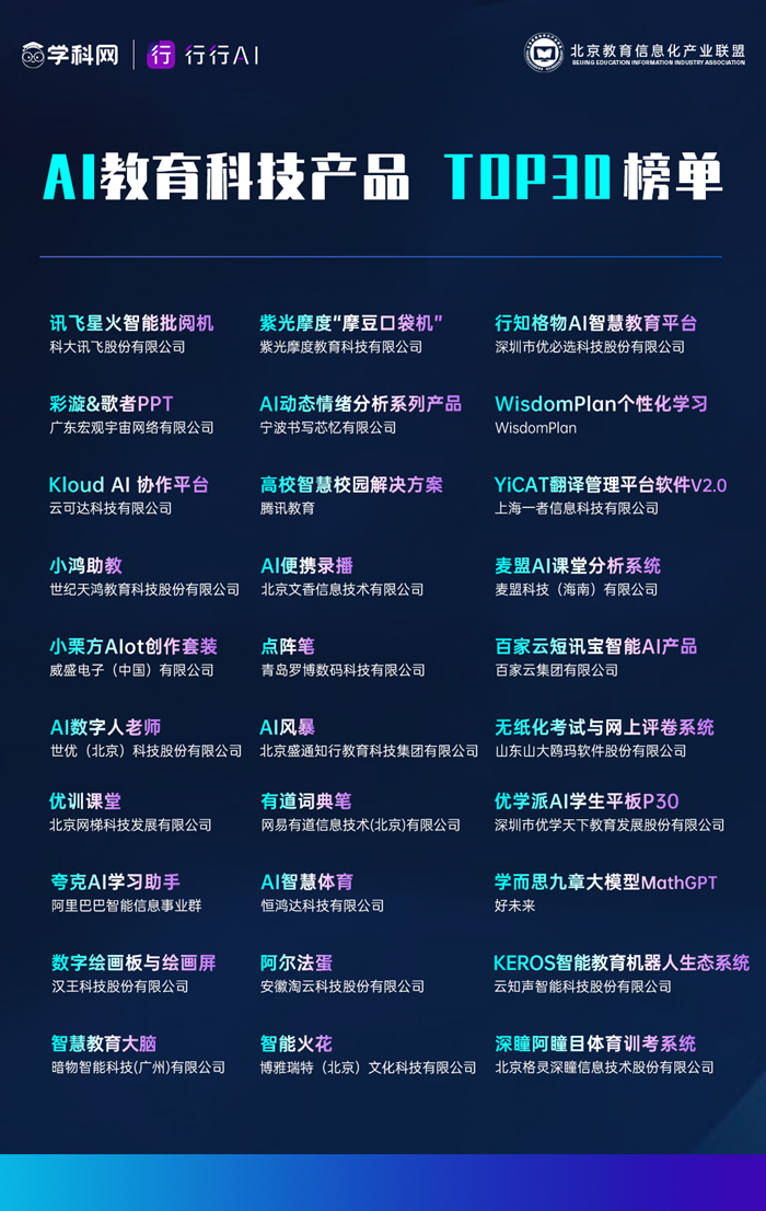 AI教育科技產品TOP30榜單發布
