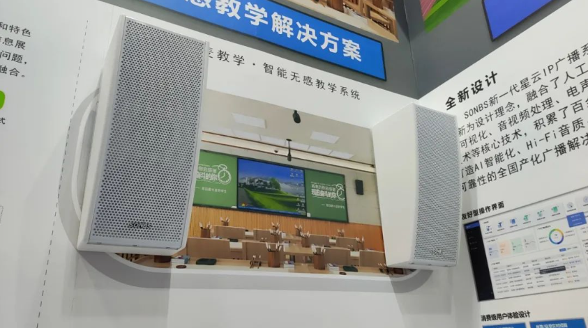 中國云南教育裝備展SONBS展位向觀展嘉賓呈現各類產品系統的創新以及在教育行業的應用,闡明在如今技術快速迭代、通過將成熟的音視頻體系與AI、數字孿生、大數據等前沿技術相融合,靈活運用于各類教育場景中,提供更加智能、高效、高性價比的服務。