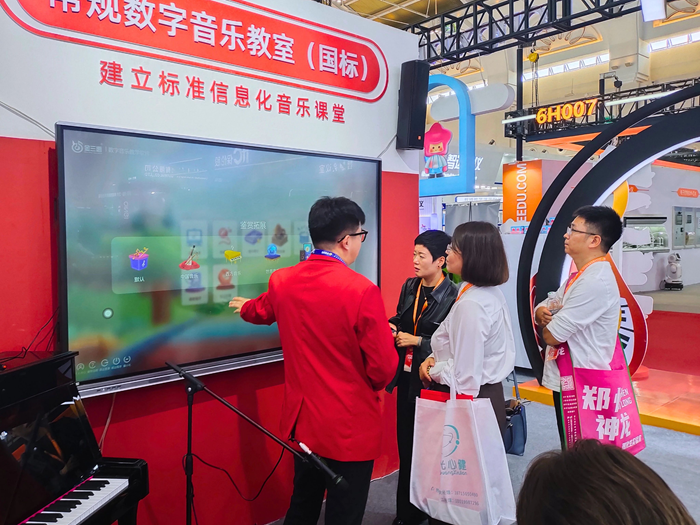 【金三惠】專注于數字化音樂教育領域,積極擁抱數字化、智能化音樂教育時代,本次展會,攜智慧音樂素養教室、常規數字音樂教室(國標)、數字音樂教育綜合平臺、自動演奏鋼琴、奧爾夫樂器等產品和應用精彩亮相。