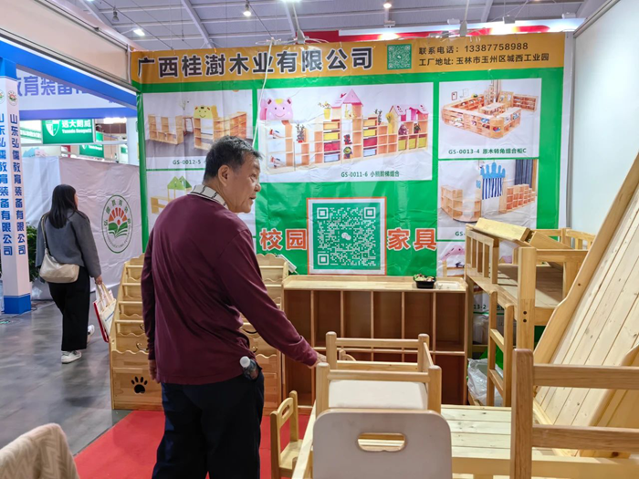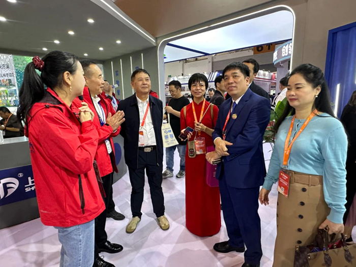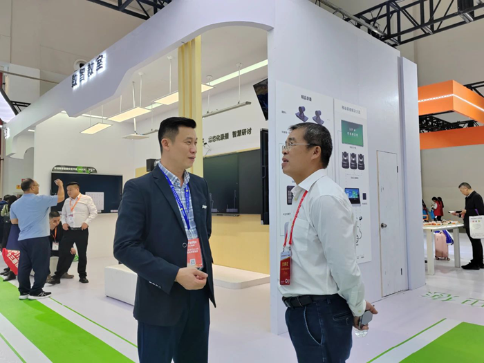 10月25日上午廣西教育裝備行業協會創會會長陳鐵華帶隊接待由越南教育裝備行業協會組成的越南采購團,并陪同越南采購團到展位上參觀交流。