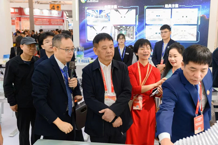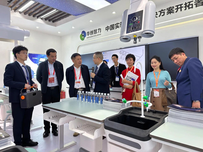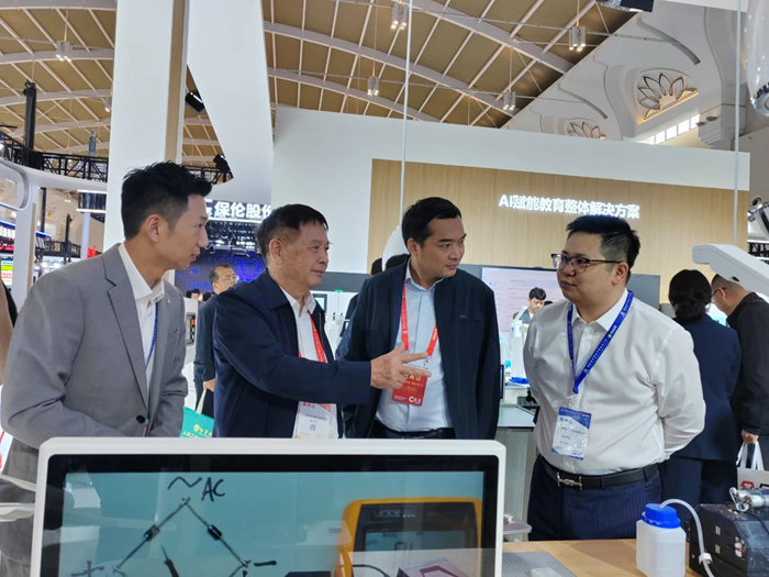 由廣西教育技術和信息化中心副主任盧衛,裝備管理部部長袁源,廣西教育裝備行業協會創會會長陳鐵華,南寧市教育局原局長、第九、十屆國家督學夏建軍,廣西教育技術和信息化中心原副主任陳軍,廣西教育裝備行業協會代會長貴尚明、專家廖奕琛、廣西教育裝備行業協會人工智能教育裝備分會會長丁健等組成的廣西代表團分別出席了相關活動,并分成多支觀摩隊伍到展示會現場觀摩。