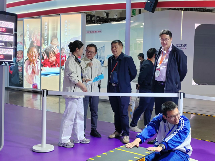 觀摩隊伍通過參展企業,了解國內國外最新教育裝備,領略人工智能、大數據、云計算等前沿科技在教育領域的融合應用。