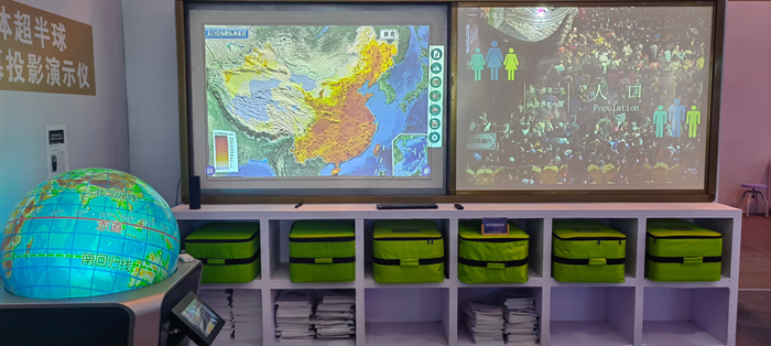 除了書法教室,羿飛還展示了其數字化地理歷史教室。該教室的核心產品智圖云課,通過云計算技術,將地理歷史知識以動態、立體的形式展現給學生,極大地增強了學習的直觀性和互動性。雙屏歷史沿革功能讓學生能夠同時觀看歷史事件的時間線和相關資料,而立體地形展示則讓學生能夠從三維角度理解復雜的地理概念,為地理歷史教學提供了全新的視角。