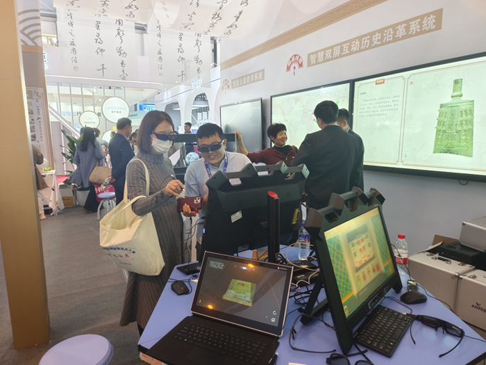 此次展會羿飛教育展示了旗下四大產品線,分別是針對史地科學領域的羿飛教育品牌產品線、針對書畫教育的翰墨派品牌產品線、針對信創云桌面的宗師云品牌產品線和針對學生閱讀的AI互動全息閱讀空間;覆蓋了文科數字化裝備的方方面面。