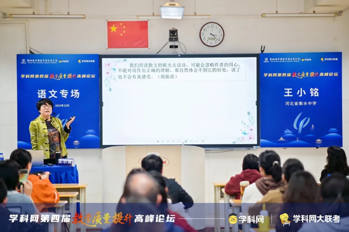 河北省衡水中學語文中心教研室主任、中學正高級教師王小銘的報告結合高考評價體系和一線教學實際,從四個方面作出回應:高考評價體系、新課標、教材和考題的研究呈現的關聯特點;這種特點如何落地;如何高效落地;如何讓團隊的備考更有效果。王老師的報告從實操層面做出回應,讓高三的備考充實而美好。