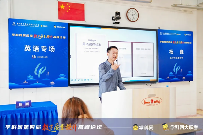 長沙市長郡中學英語教研組長楊巍的講座以宏觀政策為依據、新高考真題為導向,探討英語新高考備考模式。第一部分從高校人才選拔標準、新課標和中國高考評價體系的要求把握動向,第二部分剖析和總結近三年新高考真題的特點,第三部分探討如何進行新教材授課以及高效的復習備考。