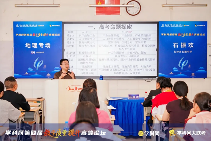 長沙市長郡中學地理教研組長、中學正高級教師石振歡的講座圍繞新課程、新課標、新教材、新高考,探討交流“四新”背景下的高考地理復習。此次講座交流諸多關鍵問題,包括宏觀上如何安排整個高中段教學任務,微觀上如何精準把握學情、考情,怎樣處理九本教材完成一二輪復習,如何提高孩子們的四能四素及解題能力,如何根據學生不同層次制定相應培養計劃等,為高考地理復習提供了新的思路和方法。
