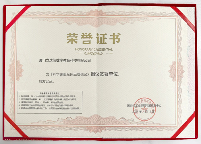 立達(dá)信作為首批科學(xué)客觀光色品質(zhì)倡導(dǎo)單位參與倡議簽署