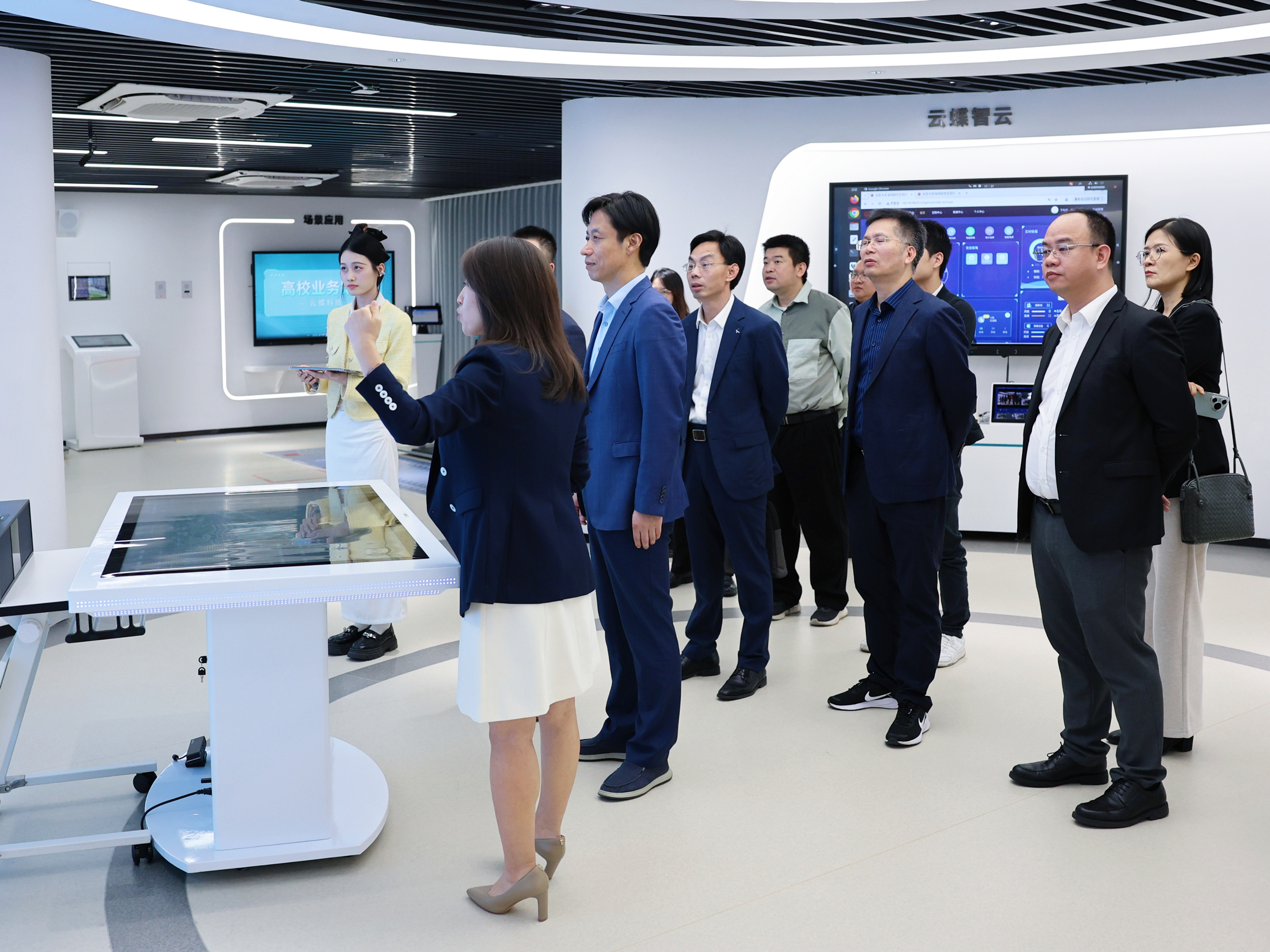 在云蝶科技展廳,楊中民校長一行聽取云蝶科技的發(fā)展歷程、業(yè)務領域顯著成果的匯報,對云蝶科技在人工智能大模型和智慧教育領域所取得的創(chuàng)新成績給予了高度評價。