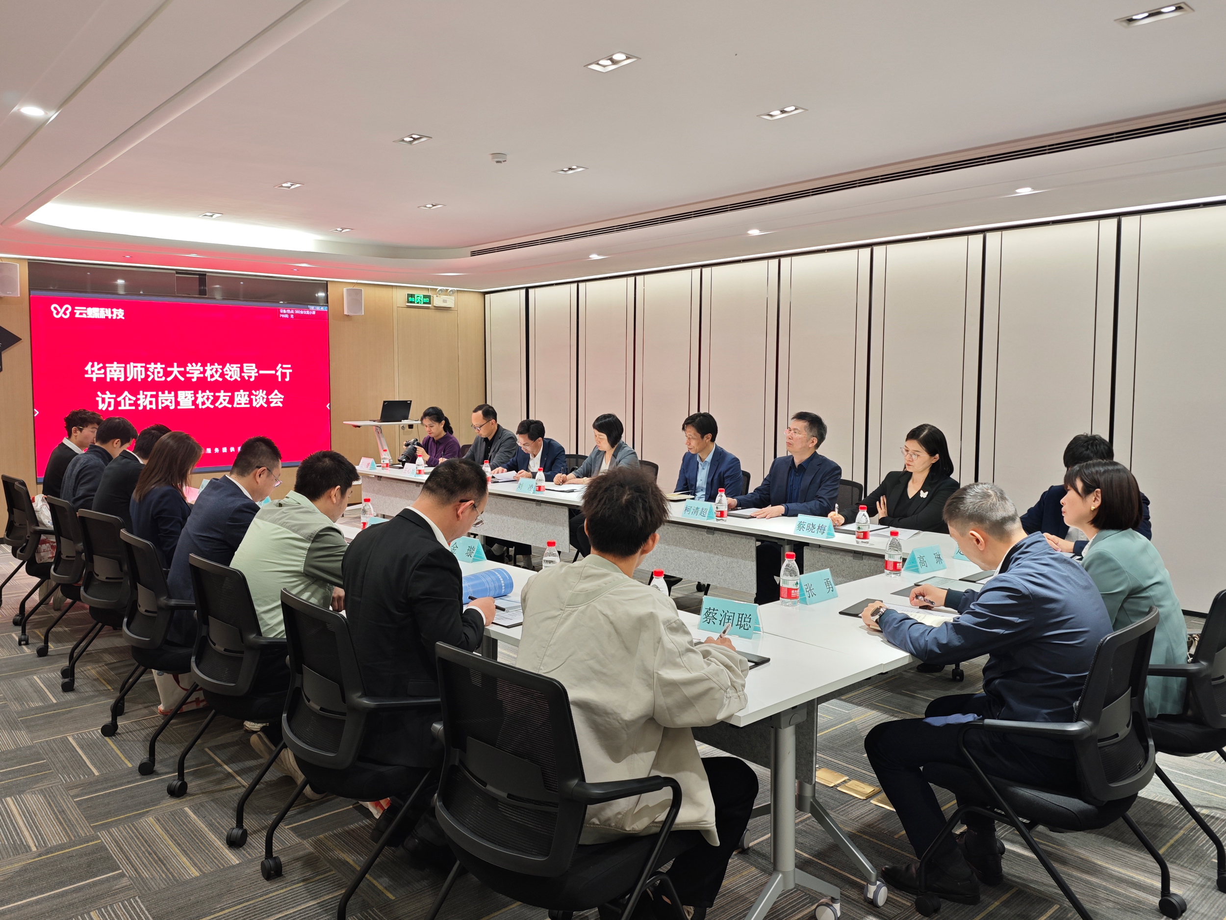 在隨后舉行的座談會上,雙方就如何深化校企合作、拓展就業(yè)崗位展開交流。楊校長表示,華南師范大學致力于培養(yǎng)具有創(chuàng)新精神和實踐能力的人才,云蝶科技等校友企業(yè)的成功經(jīng)驗具有示范作用。他強調(diào),今后學校將通過校外辦學、訪企拓崗等方式加強與校友企業(yè)的聯(lián)系,與校友企業(yè)共同成長。