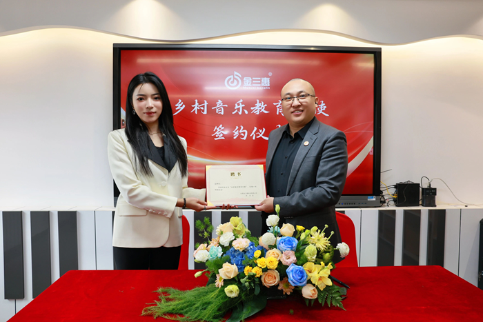 金三惠音樂教育大使簽約儀式在北京金三惠科技有限公司隆重舉行。金三惠科技有限公司與歌手李依玲女士正式簽署合作協議,擔任金三惠音樂教育大使,攜手為鄉村音樂教育事業注入新活力。