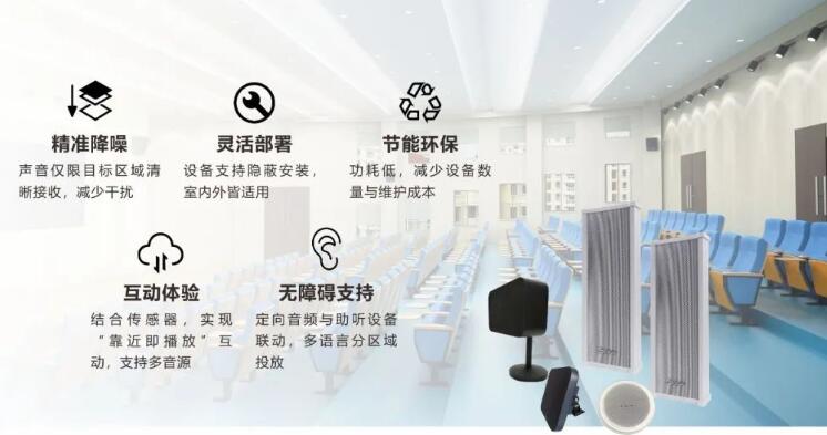 聲音的精準傳播能夠提升學習和教學的效果。拓聲定向音響憑借精準直達,讓聲音“指哪打哪”的獨特優勢,可將聲音精準限制在目標區域,減少對周圍環境的干擾。無論是在安靜的圖書館傳遞通知,還是在階梯教室分區播放教學內容,亦或是在校園展館為展品提供互動講解,定向音響都能完美適配,且支持隱蔽安裝,節能環保,為各類教育場景帶來全新聽覺體驗。