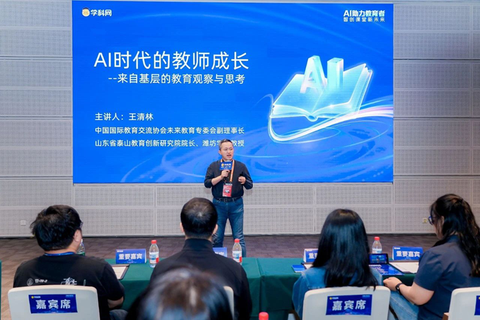 正高級研究員、國家級教學成果獎一等獎獲得者、山東省泰山教育創新研究院院長王清林現場分享了主題報告《AI背景下教師的成長》。在主題為“校長與教師雙視角:AI教育的變革與應對”的圓桌論壇上,北京理工大學附屬實驗學校黨總支書記、校長陳德收,天津市濱海新區塘沽未來學校副校長閆莉,河北省冀青之星、承德市骨干教師、承德縣第一中學團委書記梁世超,天津市濱海新區塘沽未來學校中學一級道德與法治教師、德育主任王成林進行了深入探討并分享各自寶貴經驗。