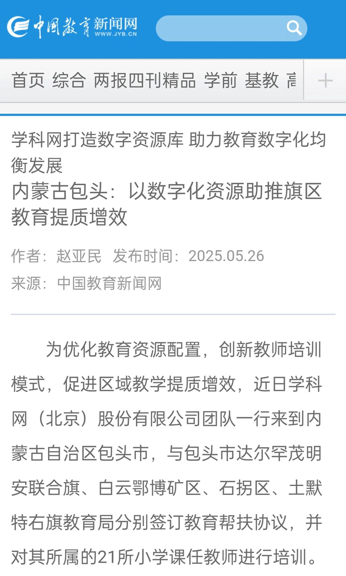 學科網與內蒙古包頭四家旗區教育局達成教育幫扶合作,以數字化助力教育提質增效