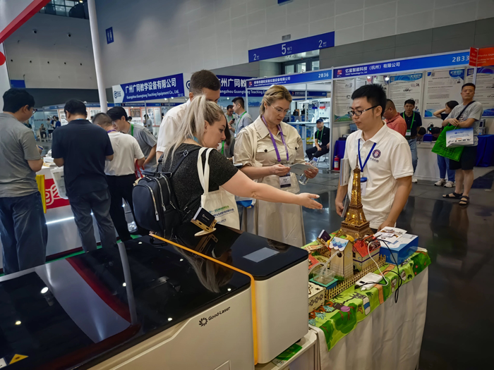 亞洲教育裝備大會的第一天,中澤教育(深圳)有限公司以其創(chuàng)新的教育裝備和技術解決方案,成功地吸引了大量參觀者和合作伙伴的關注。中澤科教不僅向參觀者展示了其激光切割機等教育裝備的實用性和創(chuàng)新性,還通過專業(yè)咨詢服務和現(xiàn)場演示,讓參觀者深刻體驗到了科技如何賦能教育,提升教學的質量和效率。