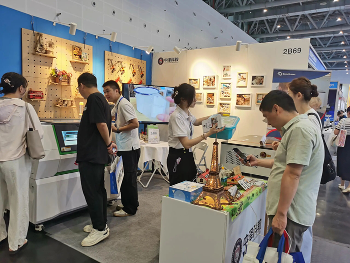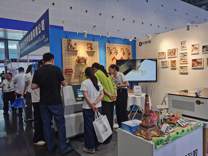 中澤科教的激光切割機在展會上進行了現(xiàn)場演示,其精準的切割能力和高效的工作性能贏得了參觀者的陣陣掌聲。通過實際操作,參觀者可以清晰地看到激光切割機在教育領域的應用潛力,如制作教學模型、藝術作品等。