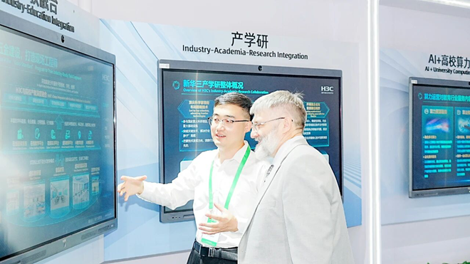 深耕教育領域多年,新華三已服務全國超2600所高等院校和科研機構,實現100%雙一流高校覆蓋,并為清華大學、北京大學等40余所頂尖院校提供智慧校園頂層規劃服務,成為推動教育數字化轉型的核心力量。此次展會,新華三基于“算力×聯接”、“AI+教育”、“教育科研一體兩翼”三大核心板塊,帶來技術與場景深度融合的創新解決方案。