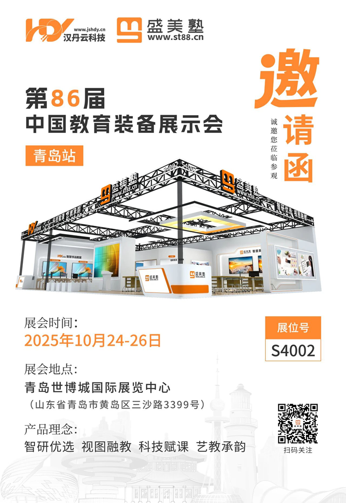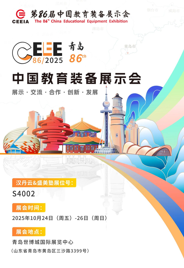 金秋十月,碩果盈枝。第86屆中國教育裝備展示會即將啟幕,漢丹云·盛美塾誠摯邀請您撥冗蒞臨青島世博城國際展覽中心S4002展位!