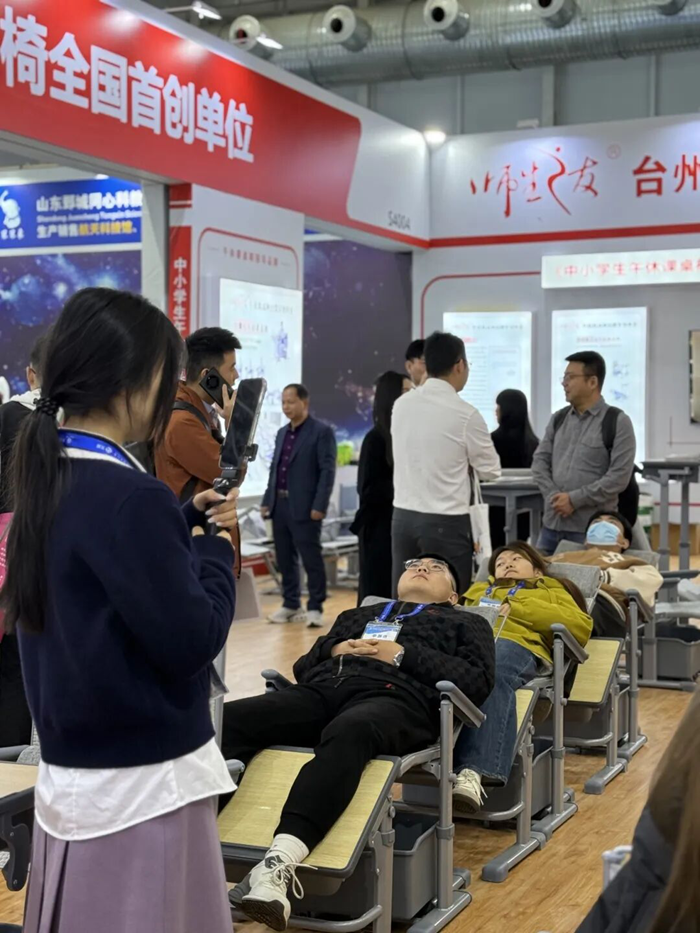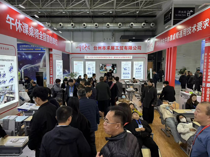 回顧現場,耳畔依舊是人聲鼎沸,參展人流穿梭不息。盡管只有短短三天時間,但是師生之友的展臺一直是人氣集結地,人潮涌涌,熱火朝天。接待了來自五湖四海的朋友前來參觀、交流。臺州市求展工貿有限公司董事長楊益民有幸接受到記者的采訪,讓我們更加深入的了解到師生之友午休課桌椅的研發理念與創新亮點。