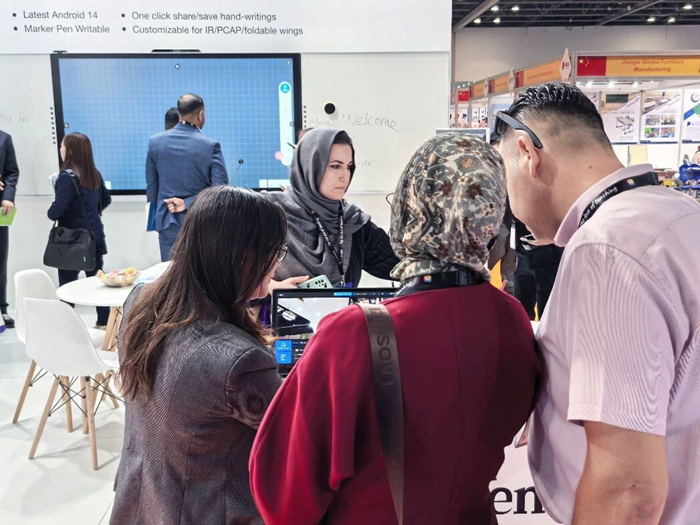 展會期間,文香展位始終人流涌動,來自阿聯酋、沙特阿拉伯、埃及等中東地區及全球各地的專業觀眾紛紛駐足體驗、深入洽談。眾多教育部門代表、學校管理者及行業合作伙伴對文香產品的科技實力、場景適配性給予高度評價,現場達成多項合作意向。未來,文香將持續以技術創新為核心,聚焦教育行業痛點,打造更多貼合全球用戶需求的智能教育解決方案,助力世界各地教育高質量發展,讓科技賦能教育無遠弗屆。