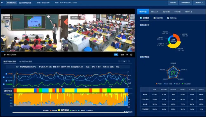 精準捕捉課堂中師生教學行為,深度解碼教學互動語義,將課堂轉化為“看得見、可量化”的數據指標,基于生成式人工智能對課堂進行診斷與評價,不僅告訴教師“發生了什么”,更能通過互動對話,提供“如何改進”的具體建議。