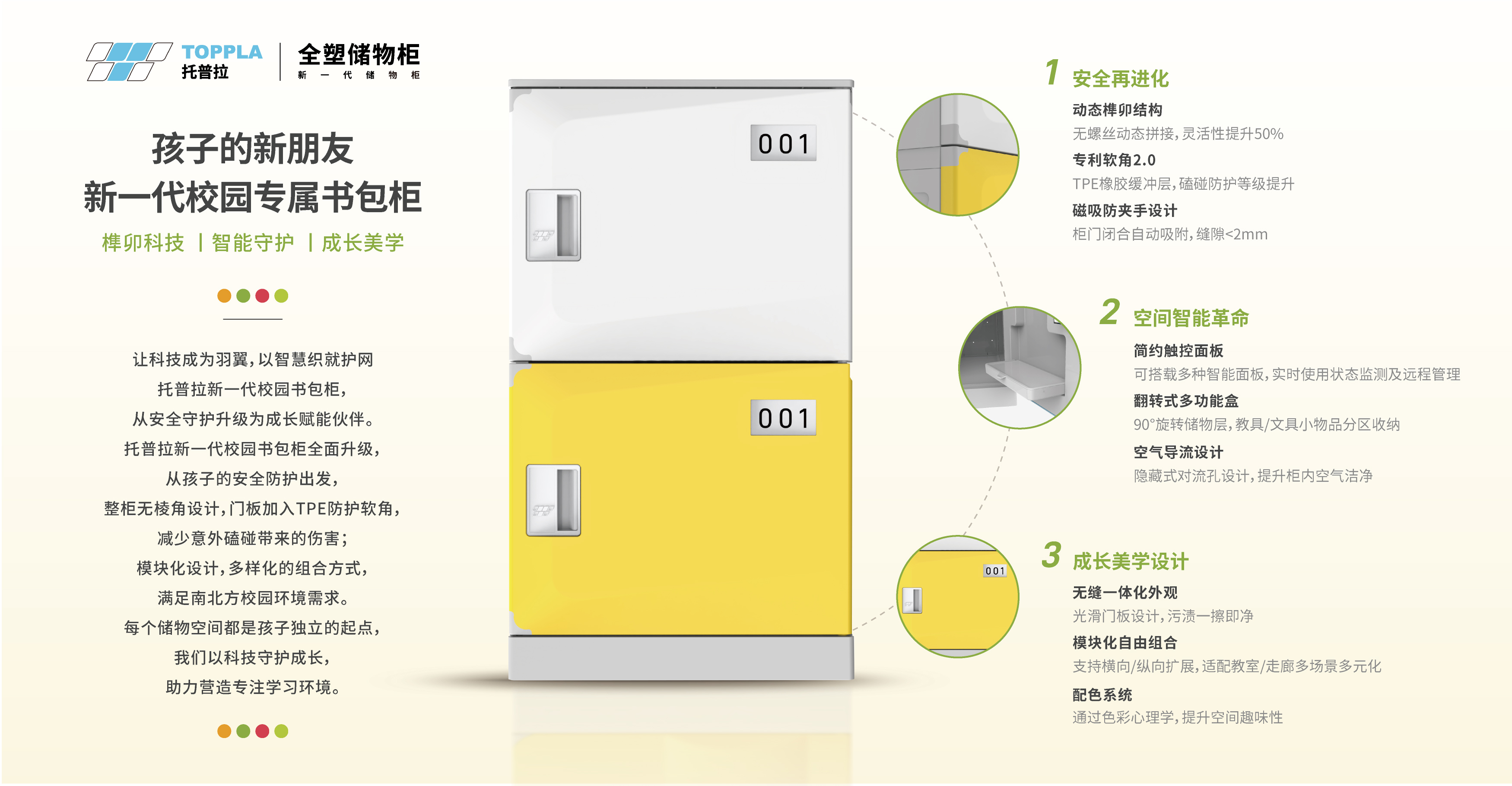 舊校區空間規劃固化、新校區新需求多元,是對儲物柜靈活性的一大挑戰。托普拉全塑儲物柜采用模塊化設計與榫卯結構,整柜無螺絲,安裝便捷,更能根據教室、走廊、宿舍等不同空間進行自由組合與擴展。舊校區固有空間下,不改變空間格局,契合可用空間提供儲物柜解決方案;新校區配合使用需求進行精準測量、個性化布局,將有限空間使用率最大化。