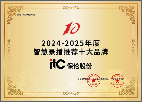 作為國內領先的錄播產品制造與綜合解決方案提供商,itc深耕行業30余載,結合不同行業使用需求,傾力打造出應用于教育行業、政府部門、企業單位、政法系統的智慧錄播系統。據報道,在日前揭曉的由智慧城市建設十大品牌評選委員會、智慧教育網等聯合主辦的評選榜單中,itc保倫股份憑借其卓越的錄播系統產品與解決方案,再度蟬聯“2024-2025年度智慧錄播推薦十大品牌”。本次成功入選,無疑是業界權威對itc在智慧錄播領域技術實力、產品品質與品牌影響力的權威認可!