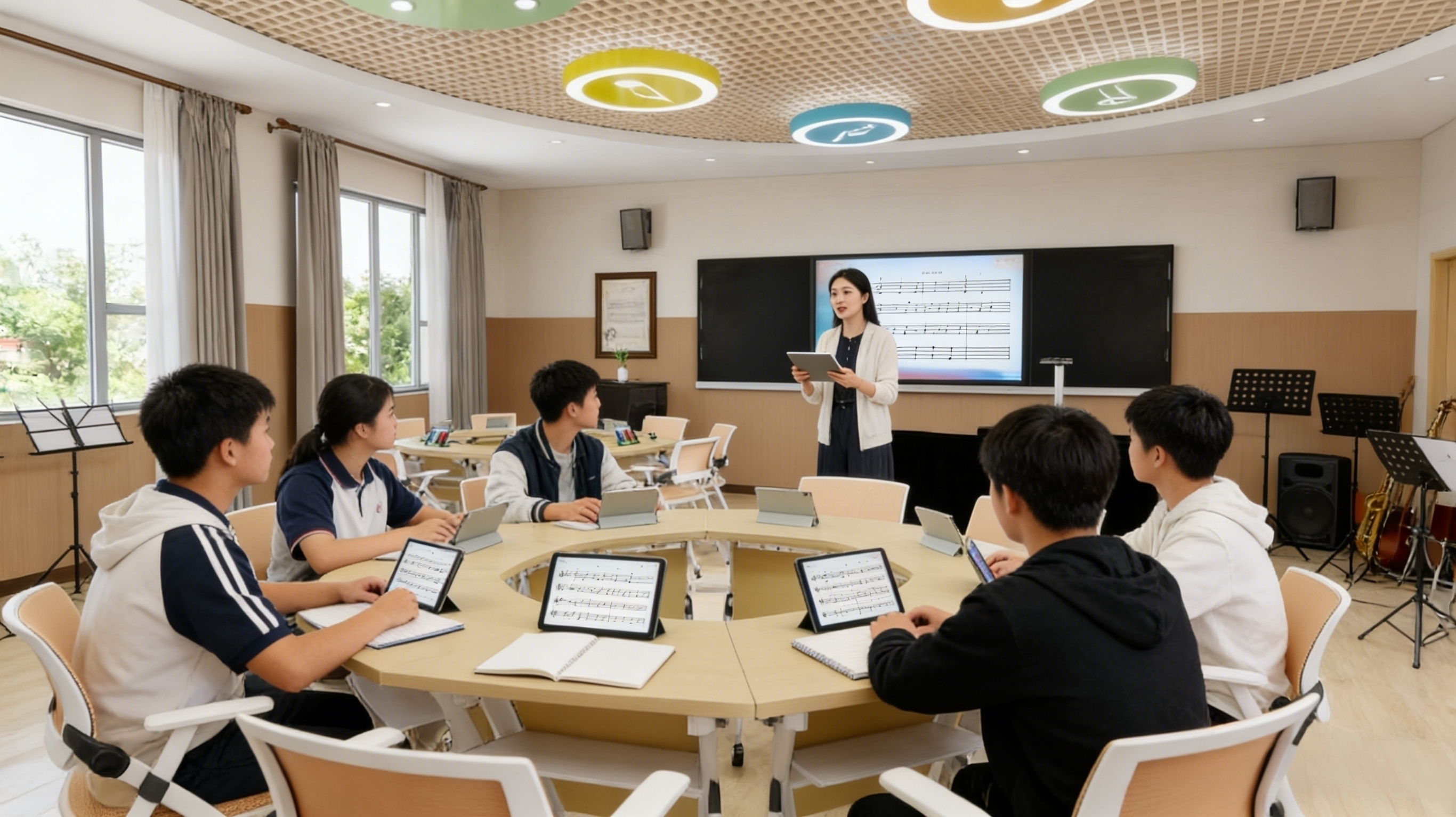 智慧音樂素養教室構建了智慧平臺+智能硬件+數字資源+智能管控+教學評價的全場景學習生態。