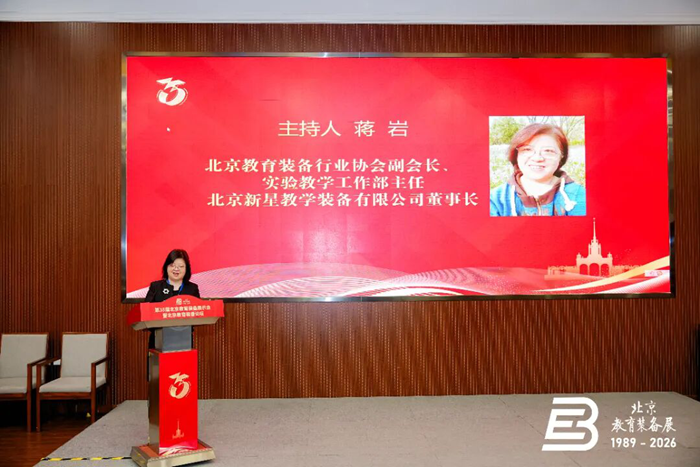 論壇由北京教育裝備行業(yè)協(xié)會(huì)副會(huì)長、北京教育裝備行業(yè)協(xié)會(huì)實(shí)驗(yàn)教學(xué)工作部主任、北京新星教學(xué)裝備有限公司董事長蔣巖主持。