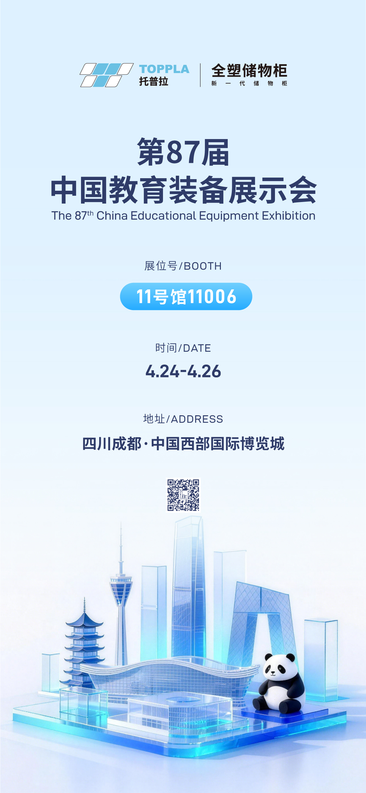 在AI賦能的時代浪潮下,第87屆中國教育裝備展示會將于4月24日以“人工智能引領教育裝備高質量發展”為主題在成都中國西部國際博覽城盛大啟幕。托普拉全塑儲物柜將以“智慧化+標準化”雙線并行,亮相11號館11006展位,從教育本質出發,以用戶需求為原點,用專業、務實、創新的態度,為教育空間標準化建設提供可落地、可復制的解決方案。