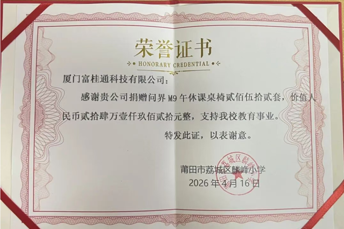 本次捐贈儀式,是富桂通踐行社會責任的又一新起點。未來,企業將繼續緊跟福建省教育事業發展部署,持續深耕教育公益領域,以更優質的產品、更務實的行動、更堅定的擔當,全力助力基層教育設施改善,為福建基礎教育高質量發展貢獻富桂通力量!