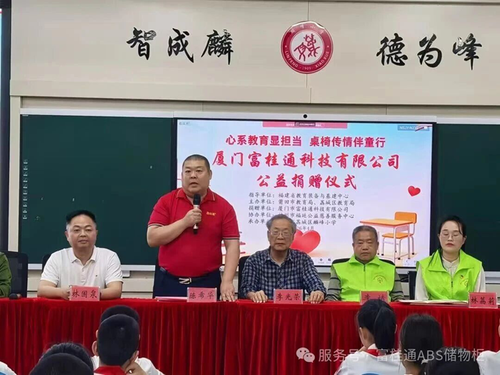 在福建省教育廳的悉心指導下,為切實改善基層校園教學設施條件,助力青少年學子健康成長,彰顯企業社會責任與公益擔當,2026年4月16日下午,“心系教育顯擔當 桌椅傳情伴童行”廈門富桂通公益捐贈儀式在莆田市麟峰小學隆重舉行。福建省教育廳、莆田市教育局、荔城區教育局相關領導,廈門富桂通公司代表、福延公益代表,以及麟峰小學校長、師生代表齊聚一堂,共同見證這場助力基礎教育發展的溫暖公益善舉。