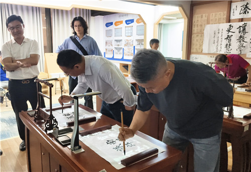 座談會后,在陳登貴董事長的陪同下,民革廣東省企業家聯誼會一行參觀了廣視通創新實驗室、中學AI教考實驗室、人工智能創客實驗室、智慧書法教室、數字地理教室等教育裝備數字化展廳,近距離觀摩了公司的核心產品與技術展示,詳細詢問了產品研發、應用場景等相關情況,對廣視通的技術實力和創新能力有了更直觀、深入的認識。