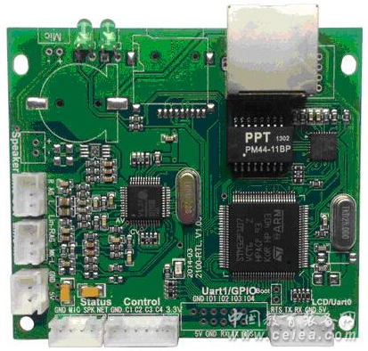 產品詳細介紹對講音頻模塊SV-2103是一款最新研發的、集成了所有應用功能的網絡音頻模塊,著重于雙向型網絡對講廣播開發。它是一款高性能的10/100M網絡音頻模塊,采用ARM+DSP架構。相對于SV-1200或者SV-2200音頻模塊,這款新型的網絡音頻模塊SV-2103提供了所有的(必備、擴展)功能接口,相當于一套迷你型開發板,用戶不需要做任何外擴電路支持就可以測試、開發自己的音頻產品。通過NAmanager軟件用于配置模塊IP地址等網絡參數,實現網絡音頻廣播和網絡語音對講系統開發。 產品特點 ■ 基于ARM+DSP架構 ■ 提供固件網絡遠程升級 ■ 標準RJ45網絡接口,支持跨網段、跨路由器 ■ 可做網絡音頻播放終端,尋呼話筒、對講終端的主控模塊 ■ 可支持最高48K采樣,播放192K bps音頻流 ■ 支持32K Mic或者Line in音頻采樣,提供廣播、組播、單播功能 ■ 提供雙向8K采樣的語音對講能力 ■ 提供1路Mic輸入、1路Line in輸入引腳 ■ 提供1路雙聲道音頻輸出引腳 ■ 提供2路串口輸出引腳 ■ 提供最多8路擴展IO引腳 ■ 提供2路擴展UART和1路擴展SPI接口 ■ 可以使用ip地址、編號、地址薄搜索等功能 ■ 可做監聽終端的主控模塊,監聽網絡上任一設備音頻信號 ■ 金屬外殼 技術參數 ■ 輸入電壓:DC 5V ■ 功 耗: ■ 工作溫度:0~65℃ ■ 網絡接口:10/100Base-TX自適應網絡 ■ 網絡協議:支持IP、ARP、ICMP、DHCP、UDP、DNS、IGMP等 ■ 音頻播放:支持最高48K采樣,192Kbps碼流;MPEG、ADPCM解碼 ■ 音頻采播:支持ADPCM解碼,8K~32K采樣可選 ■ 話筒頻域:70~12.5KHz SV-2103系列全能型模塊同時具有播放、對講和錄播功能,具有線路輸出、輸入控制接口、控制串口、狀態輸出接口和線路輸入,可以選擇內部數字功放、通用串口和GPIO。 |