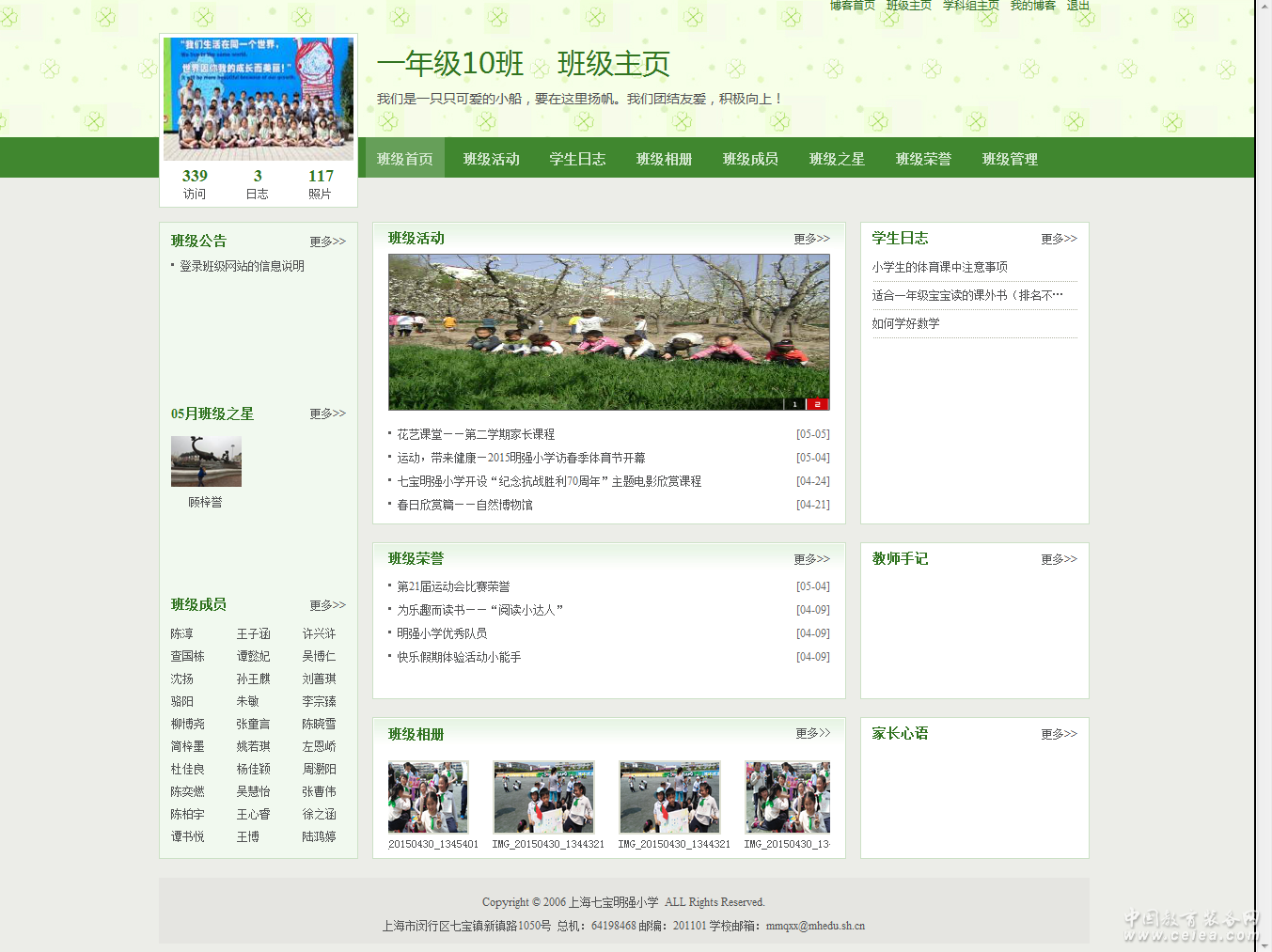 班級(jí)博客:以班級(jí)為單位的班組博客。包括班級(jí)活動(dòng)、學(xué)生日志、班級(jí)相冊(cè)、班級(jí)成員、班級(jí)之星、班級(jí)榮譽(yù)等功能。班級(jí)學(xué)生來(lái)自平臺(tái),和平臺(tái)無(wú)縫對(duì)接。月度班級(jí)之星則通過(guò)系統(tǒng)自動(dòng)計(jì)算,涉及發(fā)布的日志、照片、說(shuō)說(shuō)、評(píng)論、留言等。