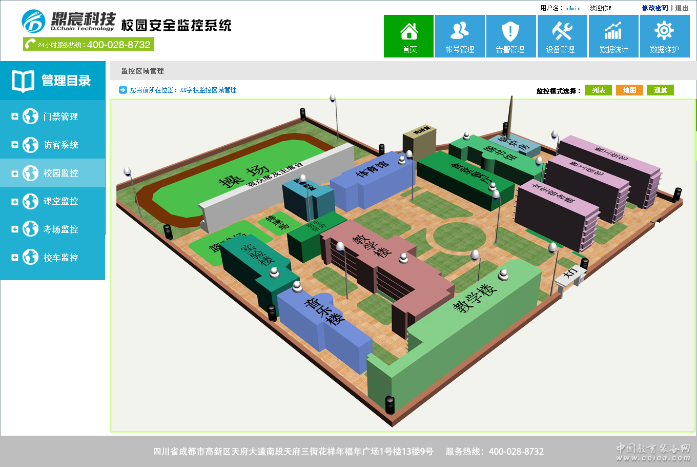管理中心 基于云技術環境構建的安全監控數據管理中心,通過對校園內新建與原有監控基礎設備進行信息化改造,利用二維碼技術、RFID技術、嵌入式技術、無線傳感器技術、衛星定位等手段,對校園內需要感知的對象進行標識;利用標簽讀寫器、智能終端設備、手持接收終端、無線感應器等信息識別設備,對上述標識信息進行識別,得到感知對象的數字信息;通過有線、無線網絡技術將這些信息及時、準確地傳送至數據管理中心,中心對收到的信息進行匯總、融合,對獲取的信息進行綜合分析、智能處理,從而使校園管理部門、各級安保單位等部門實時掌握各感知對象的詳細信息,為形成正確決策提供依據。物聯網技術使得校園對象感知能力極大加強,感知的速度、精度和范圍得到了極大提高,這是其他技術所不能代替的。 門禁系統 運用先進計算機遠程技術、網絡即時通訊以及數字化控制技術對校園門禁、宿舍、教師等重要區域的出入口進行電子化門禁管理,采用先進的非接觸式感應讀卡技術,實現對進出入數據的記錄、存儲與統計分析。系統采用RS865總線聯網或TCP/IP聯網技術,具備高度可靠性與性能穩定性、強大實時監控及聯動功能,確保整個系統的安全可靠運行。 訪客系統 實現對進出學校陌生人員的信息化管理,系統實現對二代身份真偽性的監測與辨別,實現對來訪人員的現場照相,并實時打印進出門條,提升學校安防能力。 校區監控 運用高清低帶寬傳輸技術,確保畫面傳輸質量與傳輸速度,可針對學校實際情況進行有線與無線等多種部署方式,確保監控死角的有效控制。 課堂監控 運用高清低帶寬傳輸技術,確保畫面傳輸質量與傳輸速度,可針對學校實際情況進行有線與無線等多種部署方式,確保監控死角的有效控制。 考場監控 運用高清低帶寬傳輸技術,確保畫面傳輸質量與傳輸速度,可針對學校實際情況進行有線與無線等多種部署方式,確保監控死角的有效控制。具備人體檢測功能,可針對設置范圍對徇私舞弊行為進行高清抓拍與快速報警,確保考場紀律。 校車監控 運用移動通訊技術、GPS技術與GIS技術實時對校車的運行時間、運行軌跡與運行狀況的綜合性監管與記錄。 |