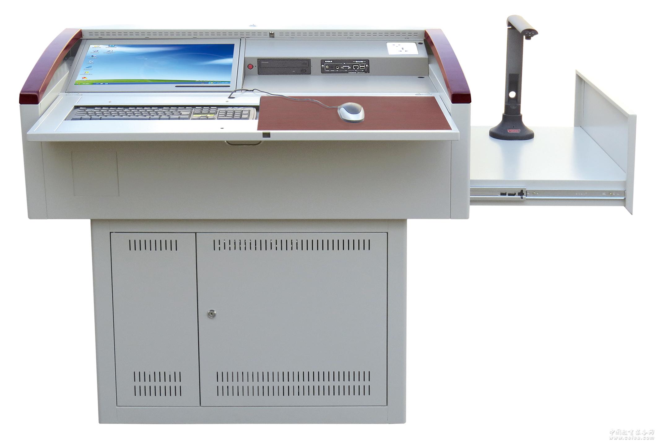 產品詳細介紹●適用范圍: 需放置電腦主機、液晶顯示器、中控等多媒體設備且要求講臺比較小、功能比較多的學校及機關單位使用。 ●講臺結構: 1、*材料:鋼結構防盜設計配合臺面豪華木裝飾,美觀大方、精致優雅;鋼結構部分經酸洗、磷化、防銹處理后靜電噴塑,堅固耐用。 2、*尺寸:外形尺寸:長1100×寬690×高980(單位mm)。 3、*講臺結構:中央控制區設置在講臺的中央,并設置一個保護門,打開門后,門變成一個工作臺面,電腦鍵盤鑲嵌在工作臺面上,中央控制區可以安裝15-21寸液晶顯示器(可選擇角度可調)、設有中控、外置電腦光驅、外置電源及手體電腦外接模塊的安裝位置,顯示器和臺面接口在講臺關閉狀態下均不可見。講臺右側設有內抽式實物展臺抽屜,輕輕拉出即可使用實物展臺;講臺裝飾板可放置學校LOGO。 4、講臺鎖:整個講臺用1把鑰匙可打開所有的門。 5、地臺:可根據學校講壇高度任意選配地臺。 6、安全設計:講臺邊角采用美觀的圓弧過渡,具有專業接地保護,防止設備漏電,確保使用安全。 7、安裝維護方便性:講臺后面設有專門用于安裝和檢修用的維修門,設備連線均可以在后面完成。 8、*證書:質量管理體系認證ISO9001:2008;環境管理體系認證ISO14001:2004;職業健康管理體系認證OHSAS18001:2007;認證范圍必須包括多媒體教學講臺,提供證明文件復印件及產品圖紙。 ●可擴展功能: 1、臺面電腦功能擴展及外接設備接口:講臺集成有電腦啟動開關、外置電腦光驅、220V電源,搭載GD-WJ102外接模塊配備了USB,話筒、VGA、音視頻信號輸入接口及網絡接口。具有完善的安裝附件。 2、智能控制電源:在沒有中控的情況下,具有打開講臺門自動接通多媒體電源,關上講臺門延時4分鐘關閉整個多媒體設備電源的功能。 3、防盜報警功能:可無縫升級防盜報警系統,在講臺保管狀態下具有遇外力撬門或門未關好,投影機被人剪、拆線發出報警聲的防盜報警功能。 4、IC/ID卡管理系統:可無縫升級IC/ID卡系統,用一張卡便能輕松使用多媒體系統,外形美觀、性能更穩定、安全。 5、臺面燈光控制系統:可升級臺面燈光控制系統。 6、組合式安裝機柜:選配結構緊湊的組合式安裝機柜及電腦主機固定架(可根據電腦主機調節合適高度),組合式理線架、理線槽,講臺內設備安裝維護時拆卸方便,干凈整潔,線條流暢。 |