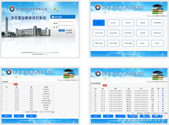 產品詳細介紹本系統由反映評價對象內涵的指標及其評價標準和量化符號組成,其主體框架是指標。根據指標權重進行學生職業素質的評價得分計算。以多方參與的評價方法為基準進行產品設計。 系統分為管理員、教師、審核人、學生四種身份。管理員對院系、專業、評價指標等信息進行管理,分配用戶權限,設置得分等級的標準值,具有編輯學生評價,分析統計、評價批量導入的功能;教師具有評價學生,查看評價明細、評價的平均得分、班級評價明細,導出評價信息等功能。審核人對評價進行審核;學生可查看個人評價信息。 產品特點: ① 評價主體互動化 ② 科學的評價方法 ③ 多方參與評價 ④ 自定義評價標準 ⑤ 多種報表統計 ⑥ 人性化的提醒 |