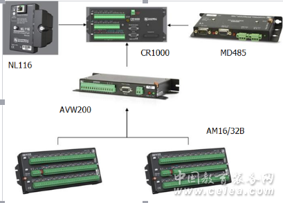 系統(tǒng)組成: 系統(tǒng)核心組件為:CR1000數(shù)據(jù)采集器、AVW200振弦模塊、AM16/32B擴展板,配件為供電電源、存儲槽CFM100及存儲卡、通訊模塊MD485及機箱等,可另配CR1000KD手持式顯示器,用于巡測和選測。 |