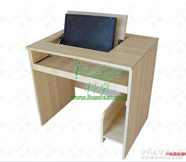 當需要使用顯示器時輕按前端桌面板隱藏在桌子內部的顯示器會自動從桌子下面升到桌面翻轉到合適角度。當不使用顯示器時,可手動按下顯示器翻蓋面板至桌面平整,顯示器自動鎖住隱藏在桌子內與桌面保持平整一致。起到防塵,防盜,保持桌面平整美觀。使用方便,手動控制,翻轉自如。