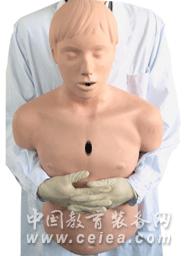 型號(hào):KAL/CPR145 該模型可進(jìn)行成年人海氏急救法操作。模擬人根據(jù)成人解剖特征和生理特點(diǎn)設(shè)計(jì),適用于氣管異物的急救。 1、自救腹部沖擊法(適合不完全氣道堵塞病人,意識(shí)清醒): ①用自己一手握空心拳,拇指?jìng)?cè)置于腹部臍上兩指、劍突下處; ②另一手緊握住此拳,雙手同時(shí)快速向內(nèi)、向上沖擊5次,每次沖擊動(dòng)作要明顯分開;③或者還可選擇將上腹部壓在堅(jiān)硬物上,如桌邊、椅背和欄桿處,連續(xù)向內(nèi)、向上沖擊5次;④重復(fù)操作步驟若干次,直到異物脫出。 2、仰臥位胸部沖擊法操作方法(用于意識(shí)不清的病人):①救護(hù)人將病人放置好仰臥體位,并騎跨在病人兩大腿外側(cè);②胸部沖擊手的定位與胸外心臟擠壓部位相同;③兩手的掌根重疊,快速?zèng)_擊5次,每次沖擊均間隔要清楚;④重復(fù)操作步驟若干次,檢查異物是否排出;⑤檢查呼吸、心跳,如呼吸心跳停止,立即CPR。 功能特點(diǎn): ■ 正常的氣道阻塞模擬; ■ 可進(jìn)行CPR操作、氣道開放和胸部壓迫模擬; ■ 氣道貫通自主呼吸運(yùn)動(dòng); ■ 進(jìn)行成人海氏急救法操作訓(xùn)練; ■ 模擬頸動(dòng)脈搏動(dòng),根據(jù)擠壓用力程度大小,操作者可以分辨頸動(dòng)脈的搏動(dòng)程度和頻率; ■ 單獨(dú)口鼻部件可更換,每套提供3個(gè)口鼻部件; ■ 電源:直流電供電。