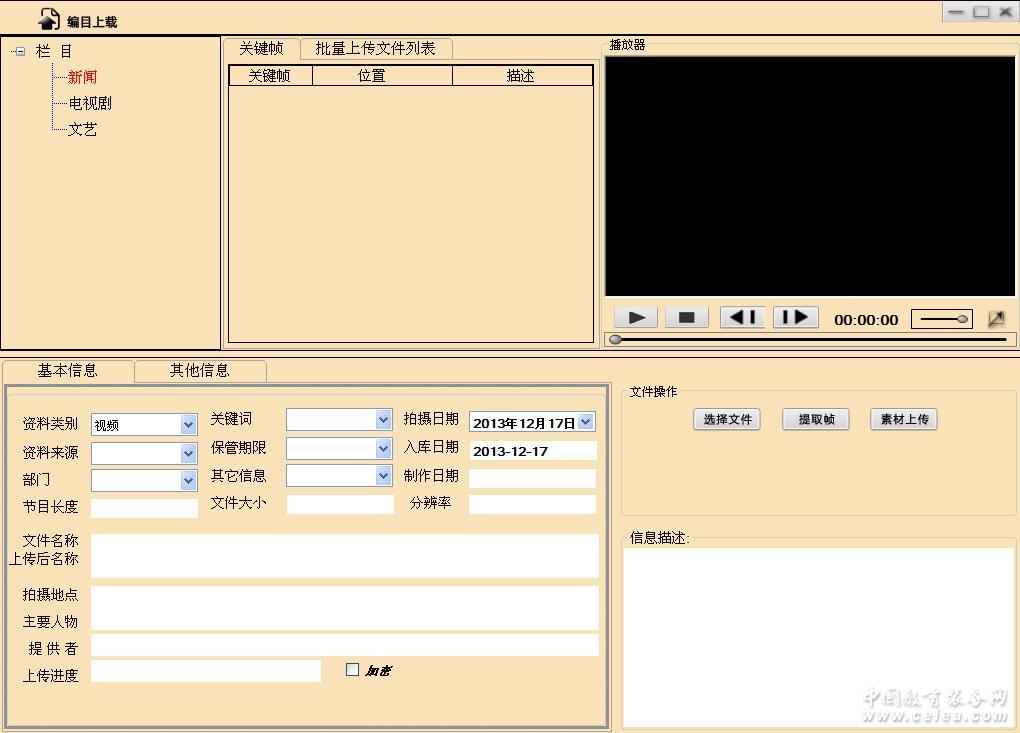 產(chǎn)品詳細(xì)介紹1采用了連接方式的上下載文件傳輸,比采用純web服務(wù)器的文件傳輸方式速度快3倍左右,打點(diǎn)下載可以精確到幀。 2.檢索時(shí)可以輸入拼音的首字母,比如“我的祖國(guó)”,可以輸入“w”、“wd”、“dz”等相鄰漢字的首字母,避免用戶繁瑣地收入漢字及字母既漢字輸入法頻繁繁瑣地來回切換。 3支持源文件格式,其它品牌的媒資都不支持。也就是說word文件、pdf、txt等文件格式文件在查詢時(shí)都可以自動(dòng)打開。 4.服務(wù)器的盤符可以動(dòng)態(tài)增加,比如f盤滿了,可以增加g盤 5. 具備批量上傳下載功能,用戶不比等上傳完一個(gè)再上傳下一個(gè),一次可以批量上傳多個(gè)文件,即集中編目,也可以再上傳完后個(gè)別修改編目,可以把其它文件做為附件進(jìn)行上傳,而且每個(gè)文件可以有多個(gè)配套文件,可以多次選擇多個(gè)文件,軟件會(huì)自動(dòng)識(shí)別已經(jīng)上傳的文件,只對(duì)系統(tǒng)內(nèi)沒有的文件進(jìn)行上傳和編目,已有文件用顏色進(jìn)行標(biāo)注。 6.支持單獨(dú)采集模塊.采集模塊做了簡(jiǎn)單的編輯功能,就是能合并,能刪除,還增加了遮擋功能,采集編輯完后可以直接入媒資庫(kù) 7.解決了視音頻分離文件的上傳下載問題,只要選擇了視頻文件,系統(tǒng)會(huì)自動(dòng)識(shí)別同目錄下的音頻文件進(jìn)行上傳下載。 聯(lián)系方式:13521019658,QQ: 2839266977,1755825282 |