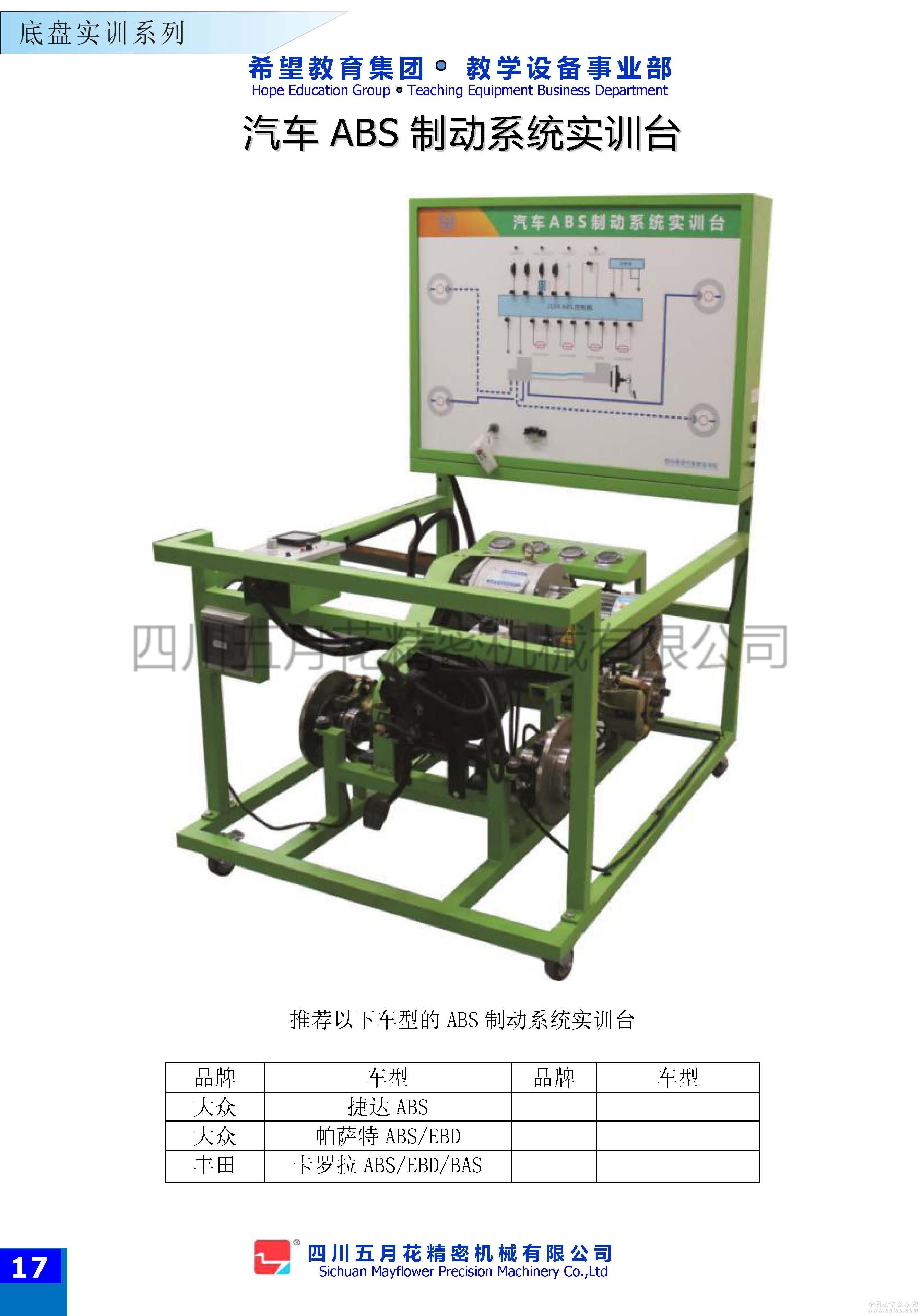8.可根據教學需求,定制其他車型的ABS制動系統實訓臺。