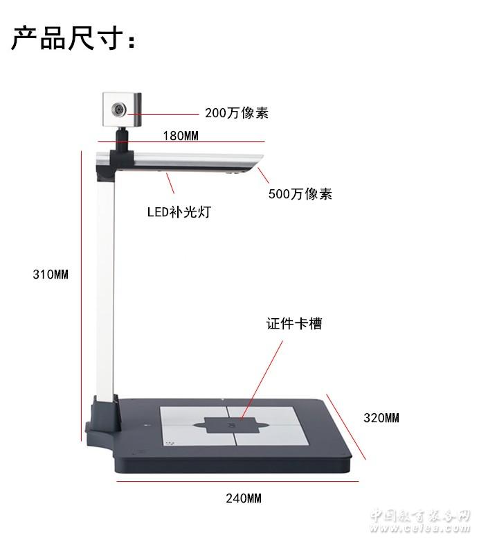 產品詳細介紹拍攝尺寸A4,A5,A6,A7,名片,票據,身份證,可以裁剪拍攝 ,OCR識別功能,網絡傳真,DV影像錄制,掃描文檔,單據,身份證,筆記,照片,雜志書籍,立體實物等分辨率 ;主鏡頭367*2856 副鏡頭1600-1200 ,尺寸 ;320*240*310mm ,掃描文件存檔無紙辦公,節能環保,效率提升USB接口連接電腦,一件即可掃描單張文件,從原來的傳統掃描儀最快10秒縮短到1秒,為個人及辦公用戶提供高效快捷的掃描新體驗 |