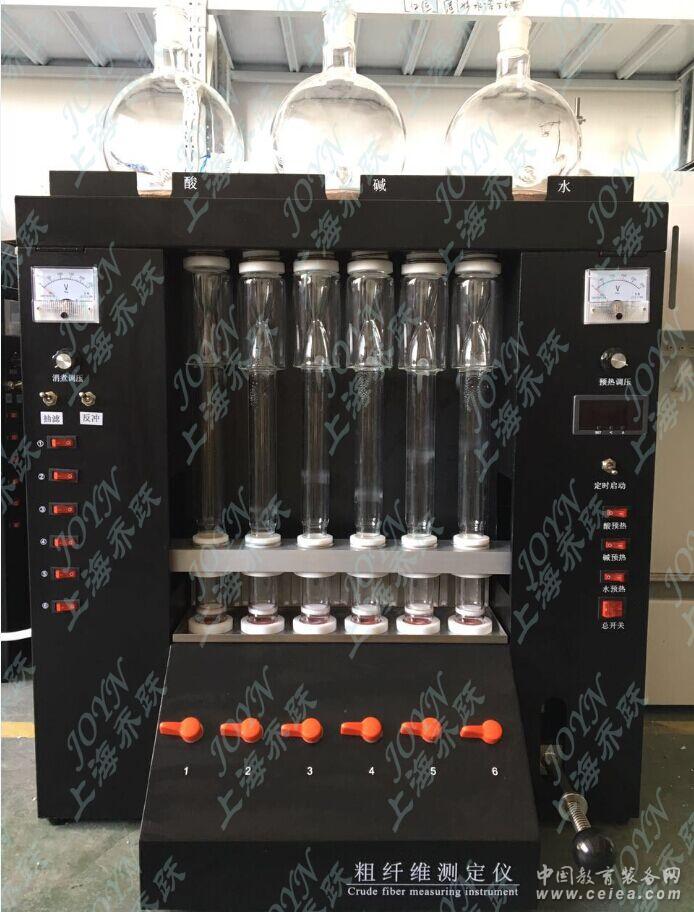 產品說明: JOYN品牌粗纖維測定儀是依據目前常用的酸堿消煮法消煮樣品,并進行重量測定來得到試樣的粗纖維含量的儀器。粗纖維測定儀采用濃度準確的酸和堿,在特定條件下消煮樣品,再用乙醇除去可溶物質,經高溫灼燒后扣除礦物質的量,所含量稱粗纖維。粗纖維測定儀不是一個確切的化學實體,只是在公認強制規定的條件下測出的概略成份,其中以纖維素為主,還有少量半纖維素和木質素。 產品特點: 1、粗纖維測定儀消煮裝置采用優質陶瓷加熱材料,熱效能好,能充分獲得消化效果。 2、所有浸提過程可通過自動放置閥操作,每個樣品整套試驗可單獨操作。 3、內置進口蠕動泵,耐腐蝕,抽真空過濾且真空度可調,可氣體反吹,加速洗滌效果。 4、粗纖維測定儀可配循環恒溫水浴,進行高精度溫度控制。 5、樣品高度可升級調節,方便取樣放料。 6、整套實驗過程都是自動完成,無需手動操作。 技術參數: 粗纖維測定儀型號:JOYN-CXW-6 測定對象:各種糧食、飼料、谷物、食品及其他農副產品中粗纖維的含量 測試樣品數:6個/次 重復性誤差:粗纖維含量在10%以下,絕對值誤差≤0.4 粗纖維測定儀粗纖維含量在10%以上,相對誤差≤4% 測定時間:在儀器上所需約90min(包括酸30分、堿30分,抽濾和洗滌約30分) 電源:AC220V/50HZ 功率:3.3KVA 體積:540×450×670mm 重量:28kg 實物圖: 聯系廠家-劉萍--150 2109 3014 或企業QQ:2851513073