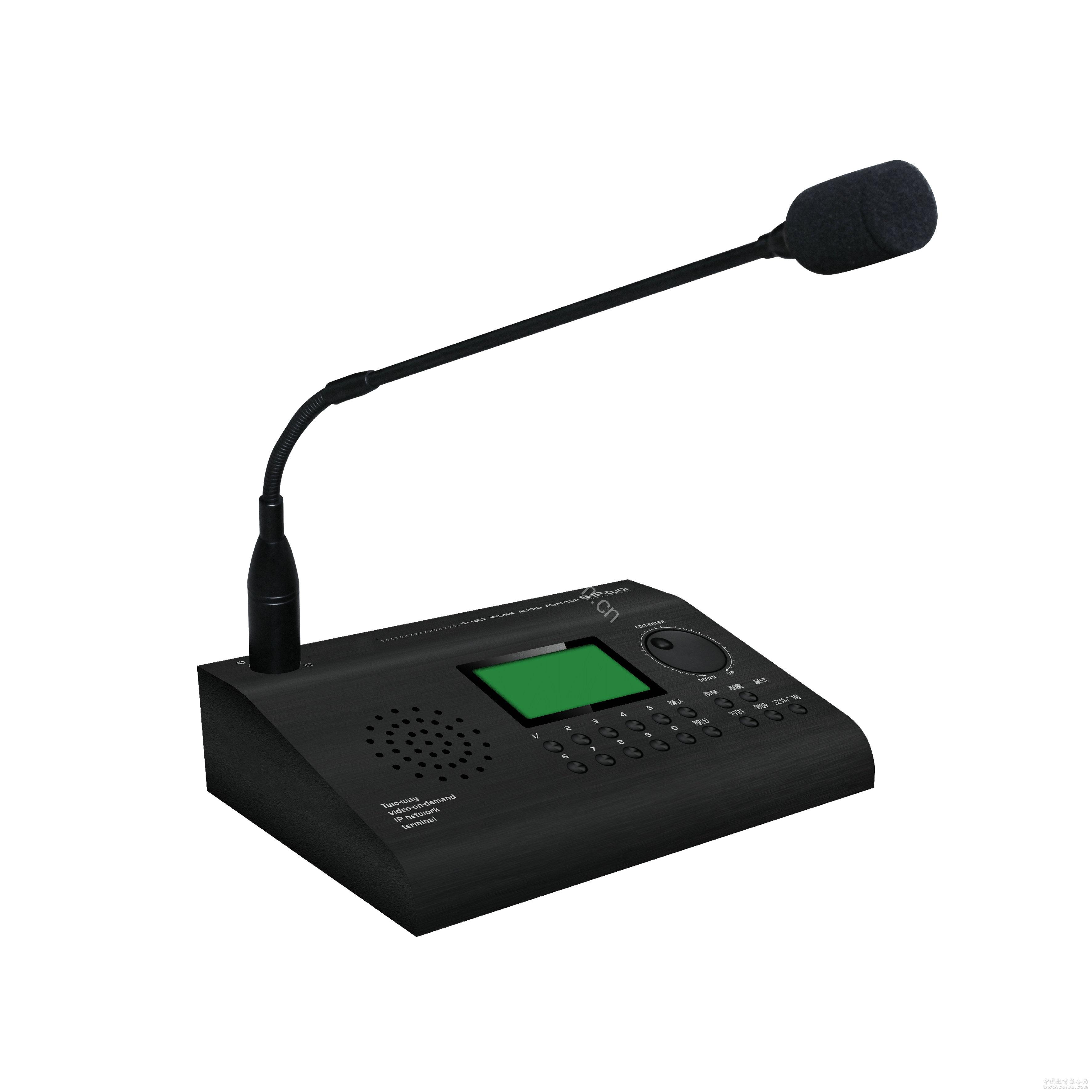 主要功能特點:★3寸高亮LCD屏(分辨率128*64),輕觸式按鍵與一鍵飛梭控制,操作簡單易懂★標配雙網絡接口,支持局域網與廣域網★全雙工雙向對講功能,輸入IP終端機號實現廣播或對講★遠程呼叫功能,可實現全區、分組或獨立分區自由選擇呼叫★文件廣播功能,可遠程控制服務系統上的節目播放到任何終端,并可控制音量調節★現場監聽功能,可對每個具有監聽拾音器終端的工作狀態進行監聽★節目點播功能,可通過面板上的鍵盤自由點播服務器上的歌曲★采用高指向拾音麥克風及3W全頻喇叭,聲音清晰★將終端本身的線路輸入信號,實時編碼成高音質音頻輸送到指定的終端★帶有來電提醒和呼叫鐘聲提示功能,并具有多個終端同時尋呼自動排隊等待或轉接功能。